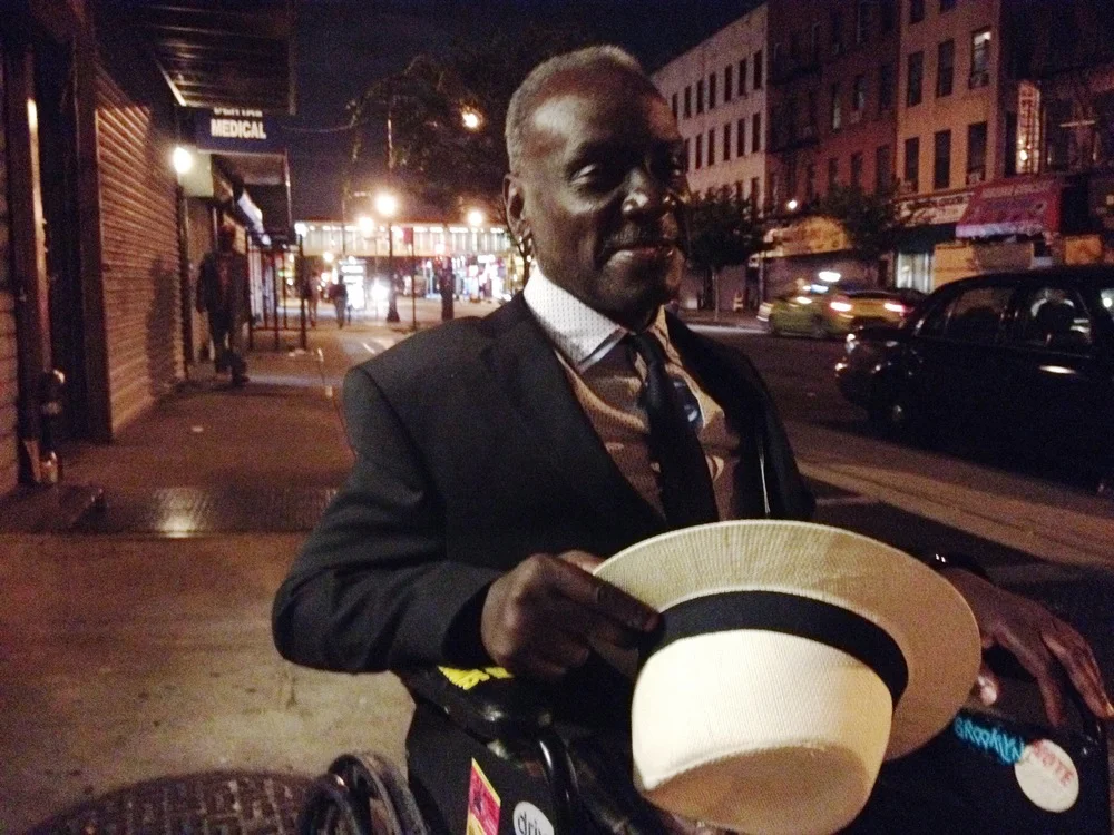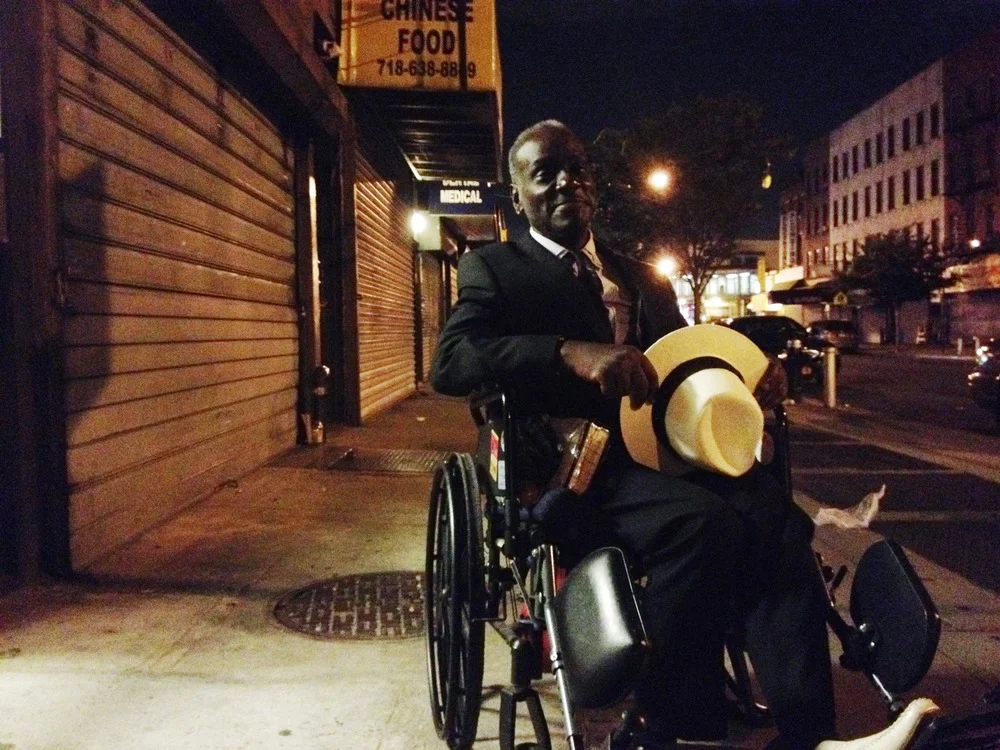 One late evening, jumping out of my cab, he randomly was right in front of my building on his way to the shelter and he looked like a movie star. I gushed over how handsome he looked. “I went to church today. I gotta look good in church. Last time I was in church it was trouble" Rickie says holding his white hat smiling. Popeyes Rickie became Rickie Corbett. A Park Slope native, one out of 14 siblings and a single father to a son at only 15 years old. Last time he went to church he almost broke a mans neck but added for a really good reason. I tried probing him for the reason, but he said, “Nah too hard to talk about”, so I didn’t push the subject. We talked for half an hour and for the first time he let me take his photo. I even remember the date, September 8th 2014. His mum passed away exactly a year before, September 8th 2013. Rickie had told me this date before on one of our shorter talks when I handed him change infront of Popeyes. I only had my iphone on me, but I thought better to capture him with an camera phone than no camera at all.